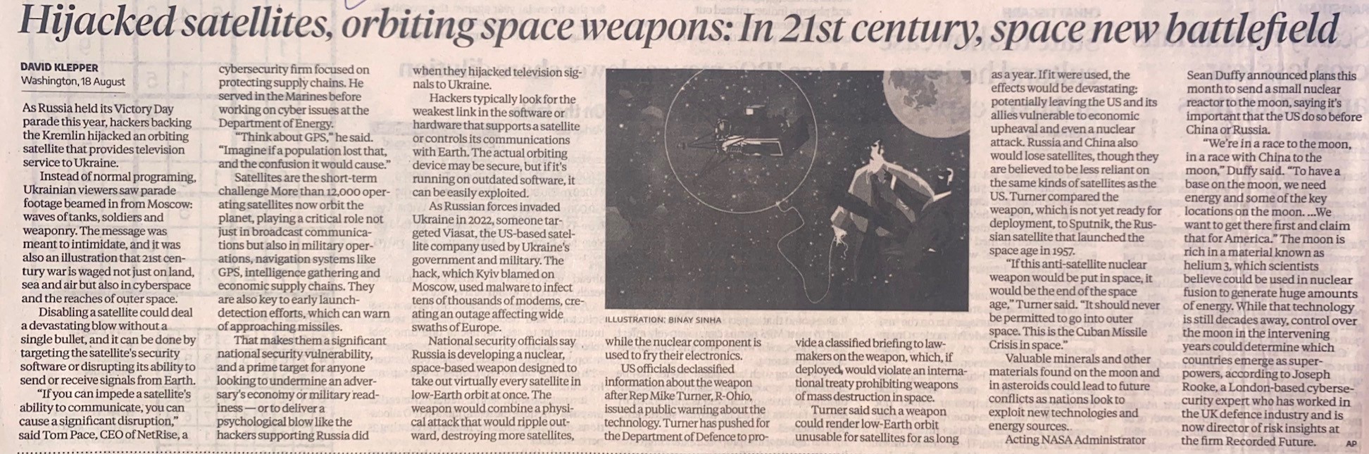 Title: | Hijacked satellites, orbiting space weapons: In 21st century, space new battlefield |