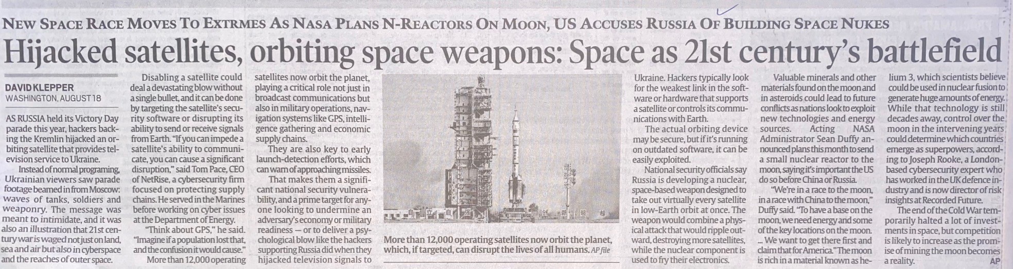Title: | Hijacked satellites, orbiting space weapons: Space as 21st century's battlefield |