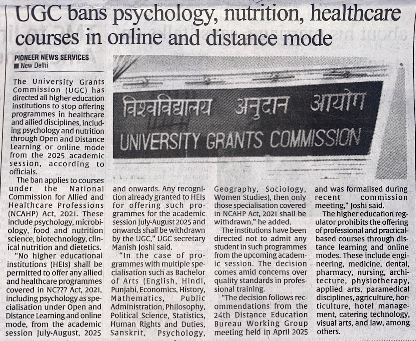 Title: | UGC bans psychology, nutrition, healthcare courses in online and distance mode |