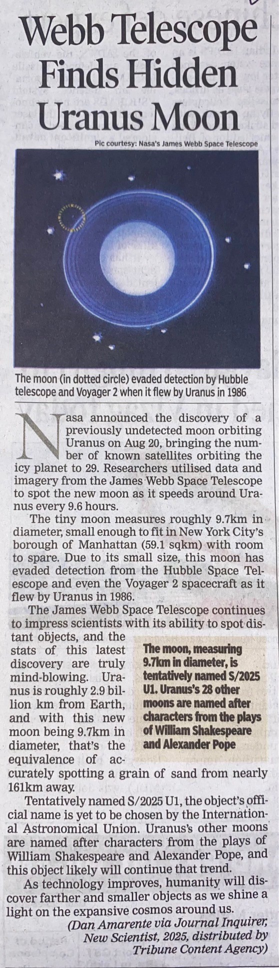 Title: | Webb Telescope Finds Hidden Uranus Moon |