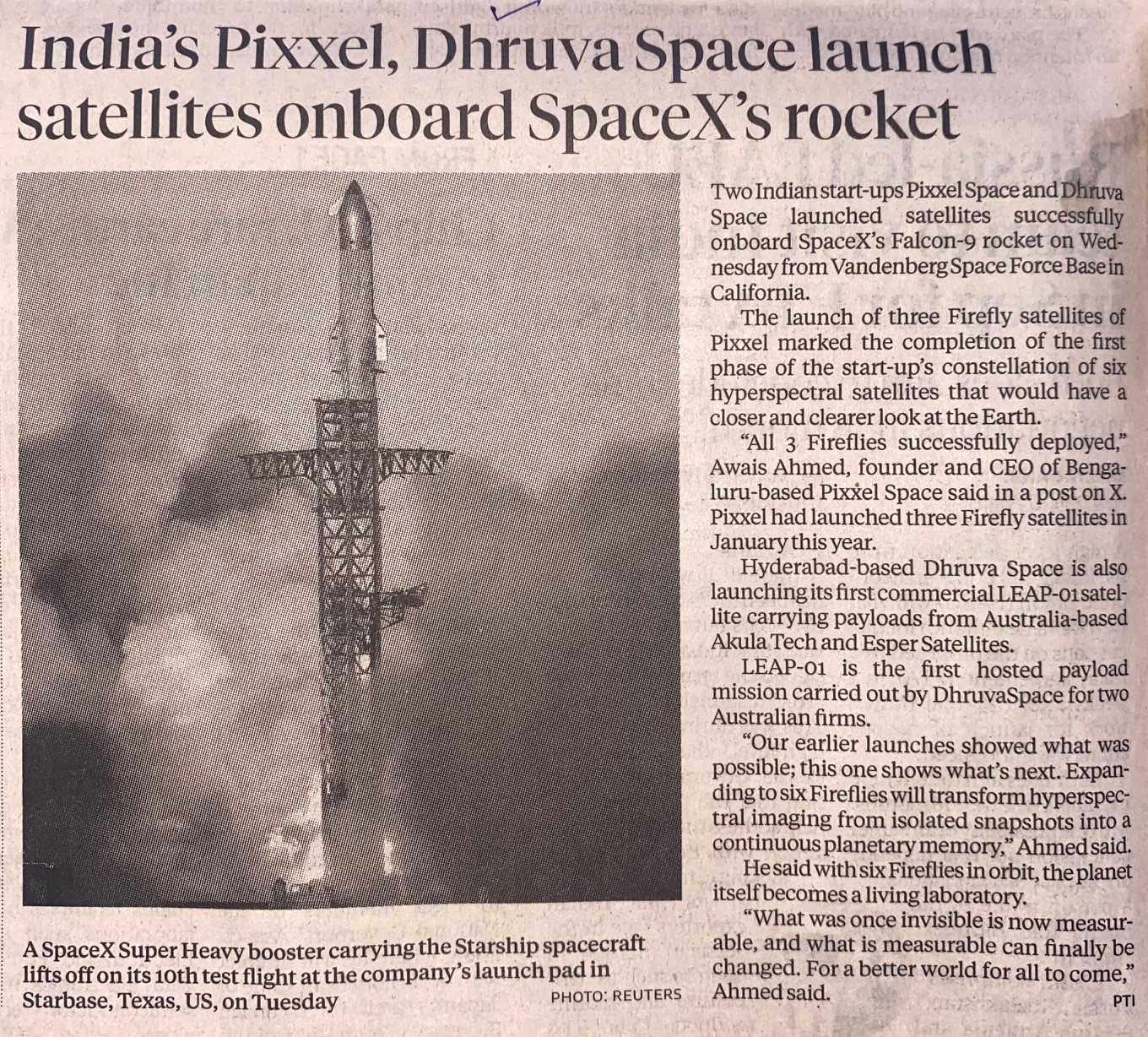 Title: | India's Pixxel, Dhruva Space launch satellites onboard SpaceX's rocket |