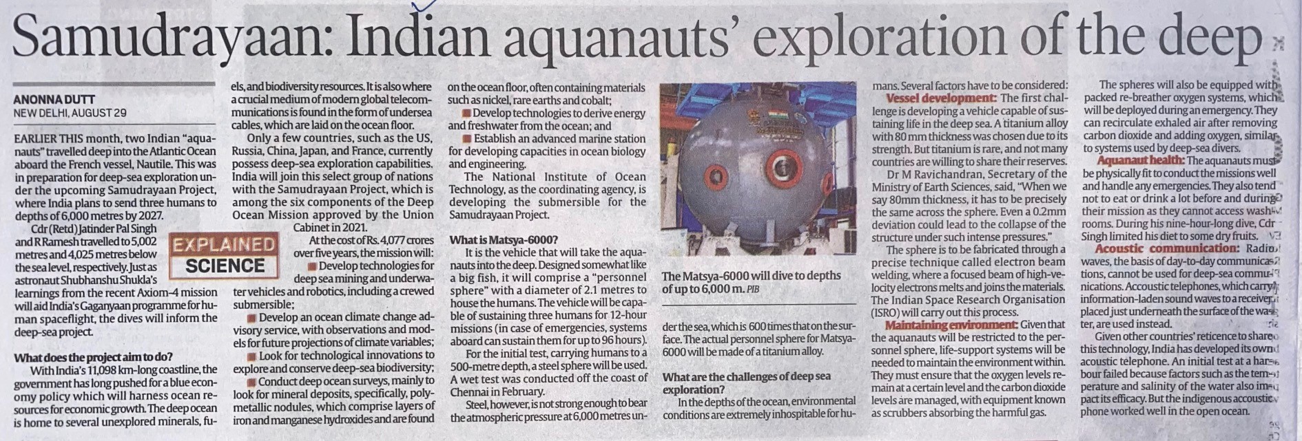Title: Samudrayaan: Indian aquanauts' exploration of the deep