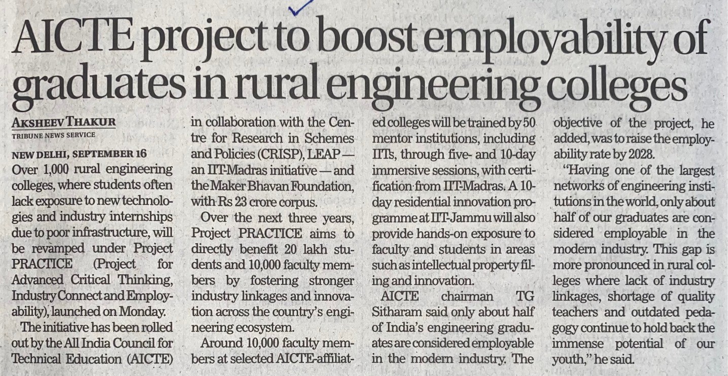 Title: | AICTE project to boost employability of graduates in rural engineering colleges |