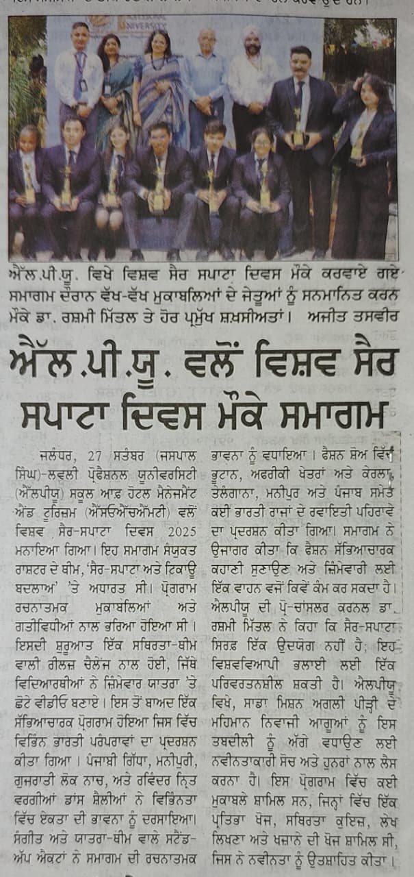 http://localhost:8080/xmlui/handle/123456789/7550| Title: | ਐੱਲ.ਪੀ.ਯੂ. ਵਲੋਂ ਵਿਸ਼ਵ ਸੈਰ ਸਪਾਟਾ ਦਿਵਸ ਮੌਕੇ ਸਮਾਗਮ |