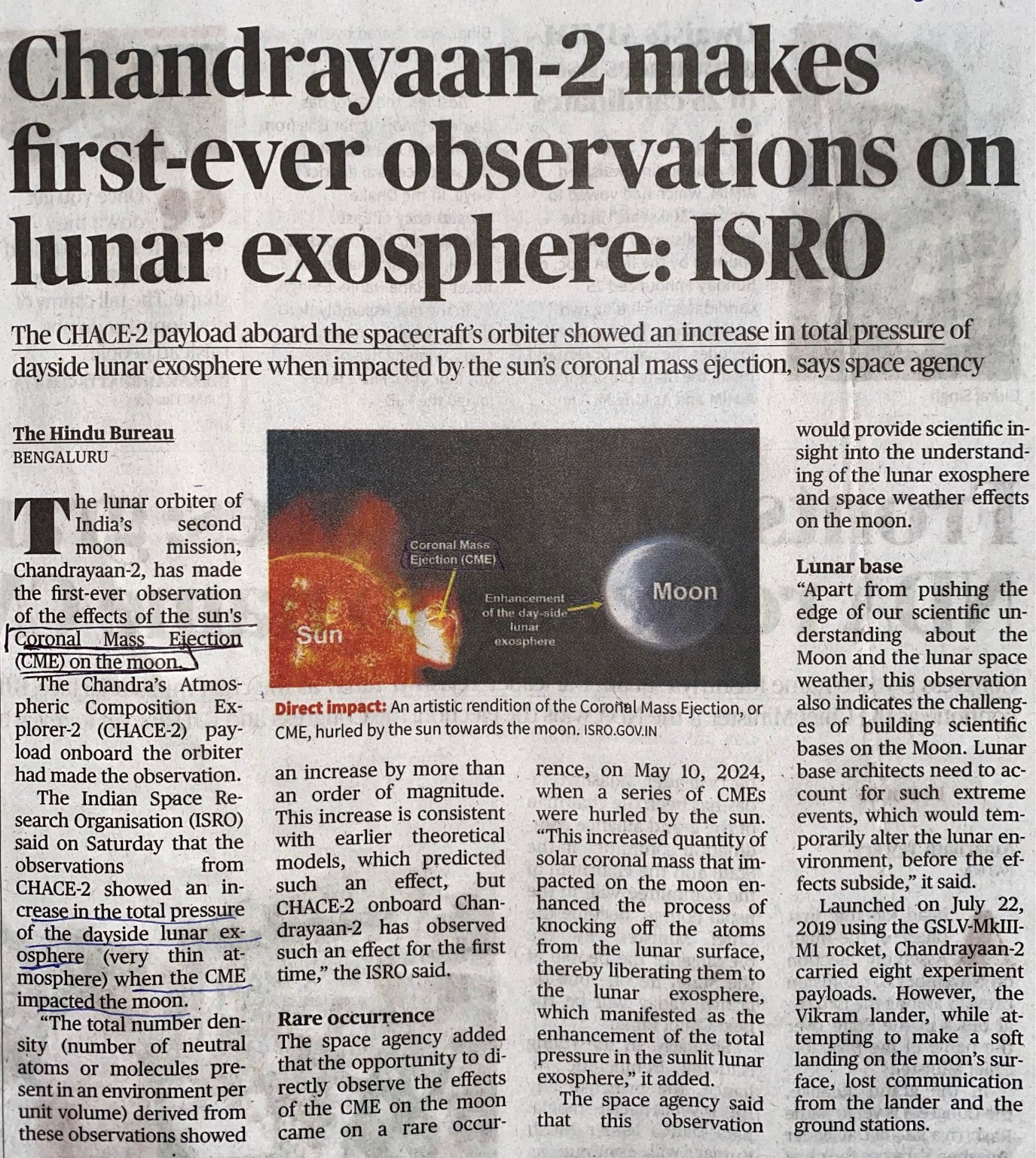 http://localhost:8080/xmlui/handle/123456789/7590| Title: | Chandrayaan-2 makes first-ever observations on lunar exosphere: ISRO |