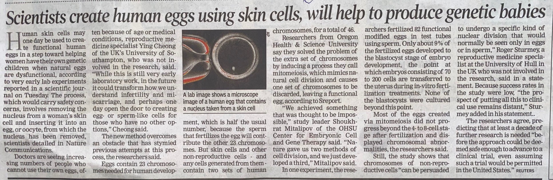 Title: Scientists create human eggs using skin cells, will help to produce genetic babies