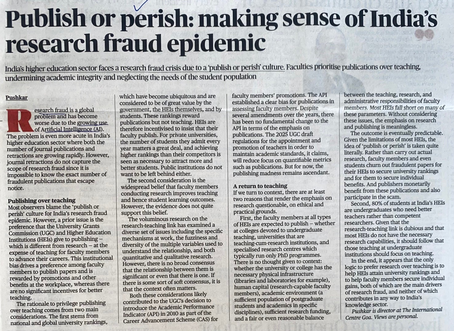 Title: Publish or perish: making sense of India's research fraud epidemic