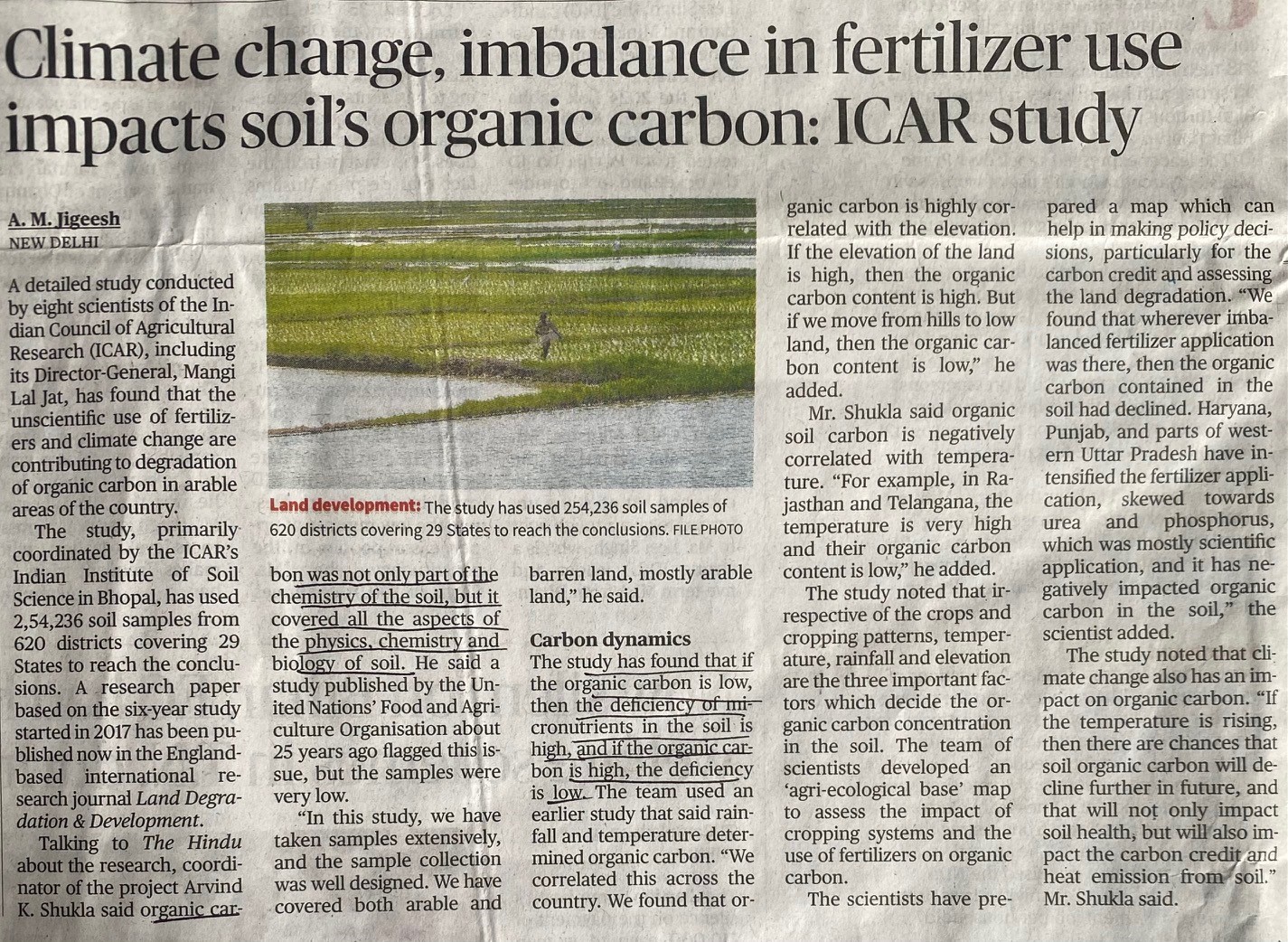 Title: Climate change, imbalance in fertilizer use impacts soil's organic carbon: ICAR study