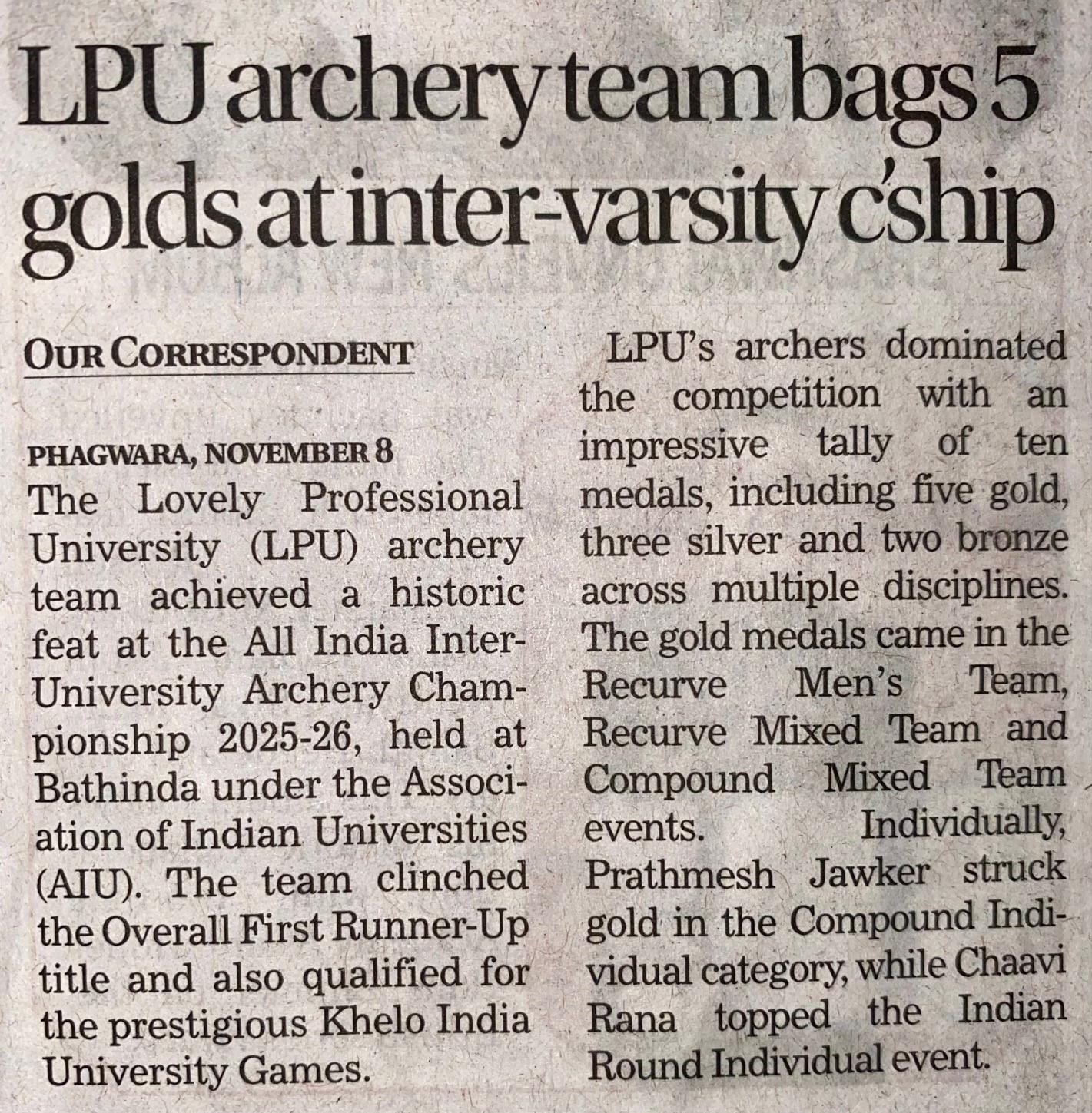 http://localhost:8080/xmlui/handle/123456789/7715| Title: | LPU archery team bags 5 golds at inter-varsity c'ship |