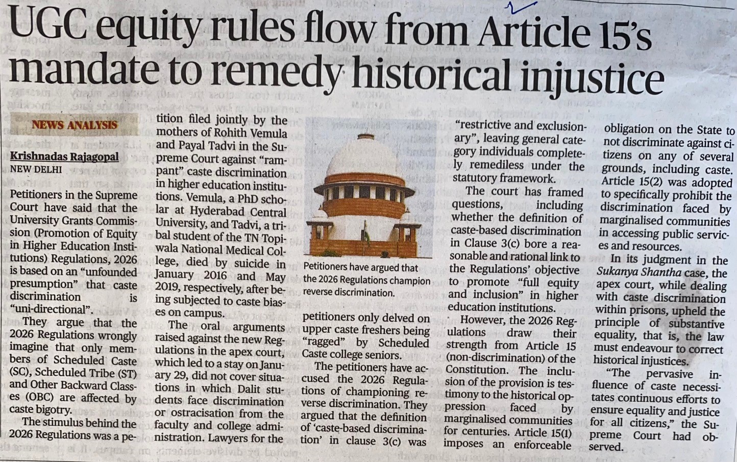 http://localhost:8080/xmlui/handle/123456789/7956| Title: | UGC equity rules flow from Article 15's mandate to remedy historical injustice |