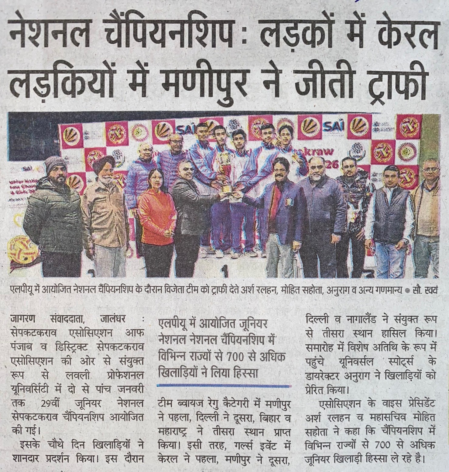 http://localhost:8080/xmlui/handle/123456789/7968| Title: | नेशनल चैंपियनशिप : लड़कों में केरल लड़कियों में मणीपुर ने जीती ट्राफी |