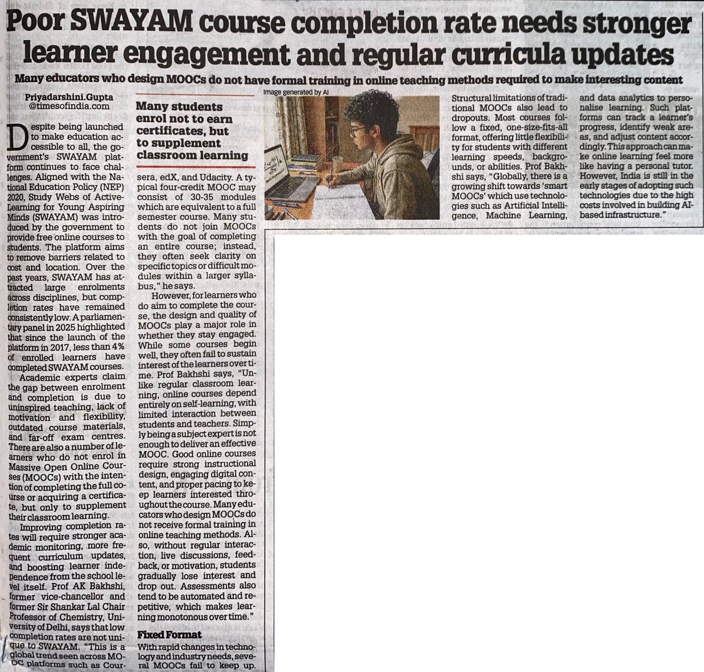 http://localhost:8080/xmlui/handle/123456789/8037| Title: | Poor SWAYAM course completion rate needs stronger learner engagement and regular curricula updates |