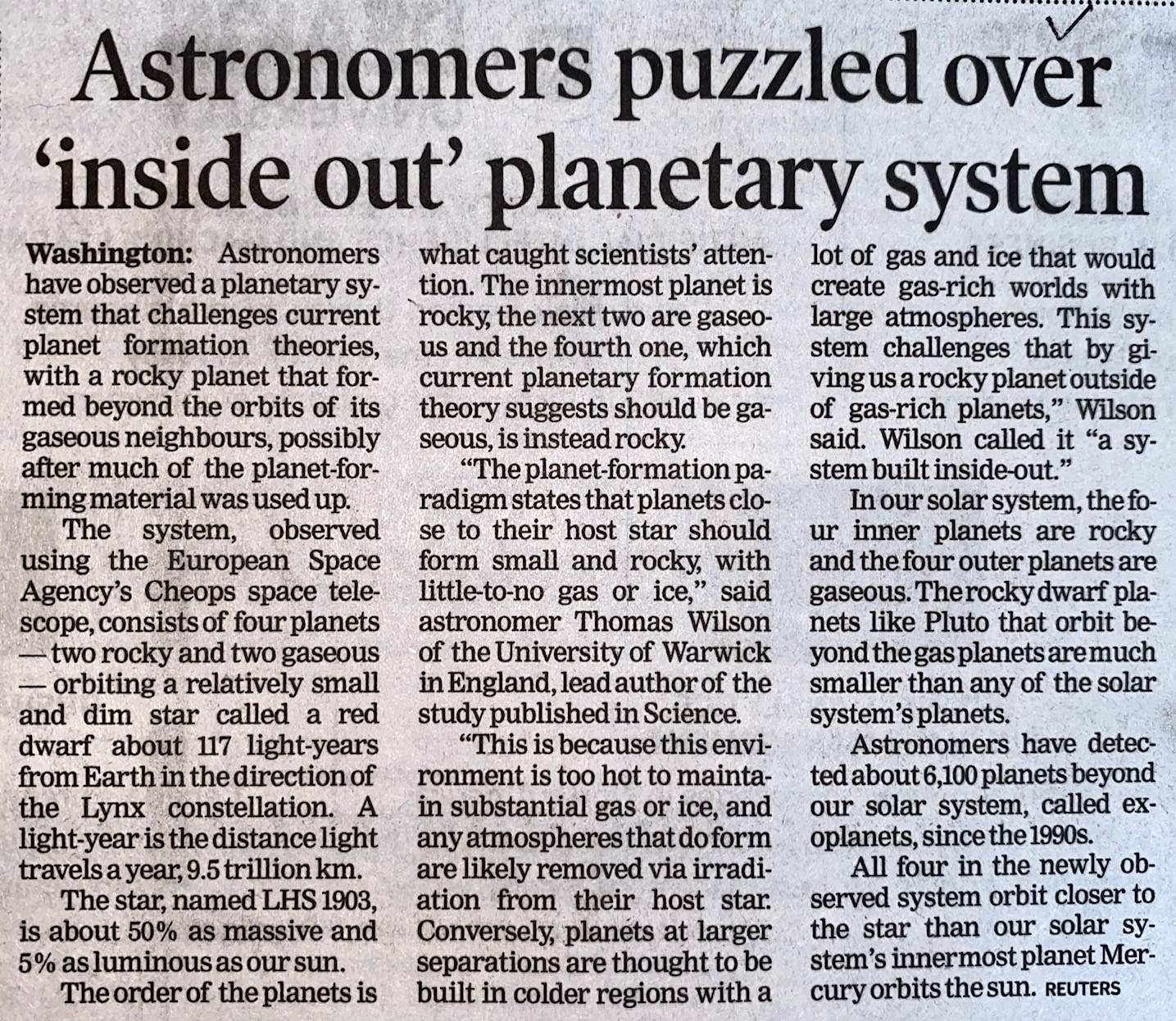 http://localhost:8080/xmlui/handle/123456789/8042| Title: | Astronomers puzzled over 'inside out' planetary system |