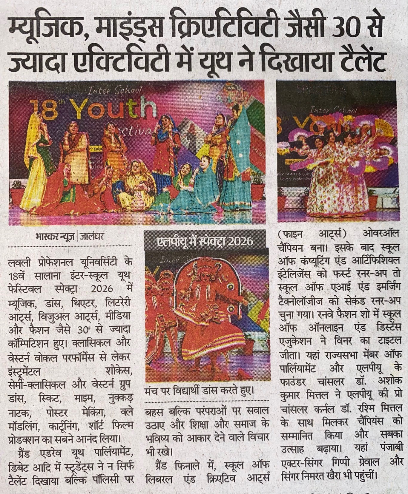 http://localhost:8080/xmlui/handle/123456789/8060| Title: | म्यूजिक, माइंड्स क्रिएटिविटी जैसी 30 से ज्यादा एक्टिविटी में यूथ ने दिखाया टैलेंट |