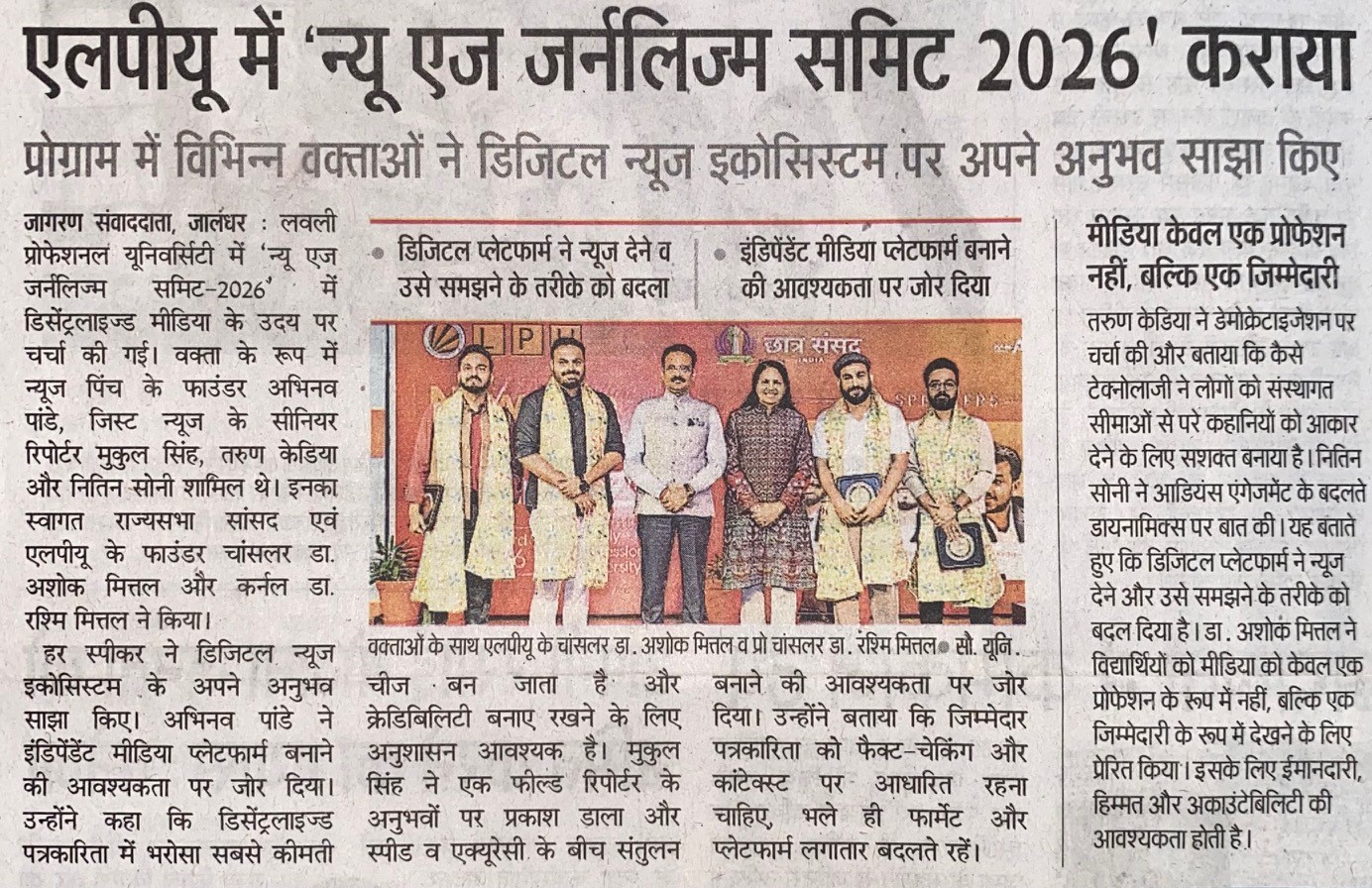 http://localhost:8080/xmlui/handle/123456789/8065| Title: | एलपीयू में 'न्यू एज जर्नलिज्म समिट 2026' कराया |
